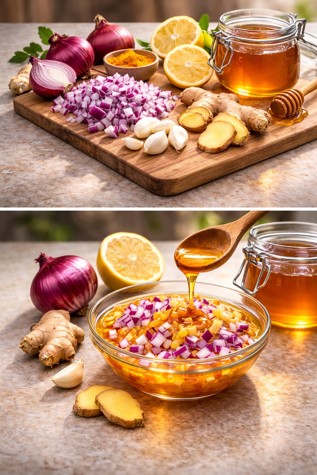 This jar of chopped garlic, onion, and ginger is like a mini natural pharmacy. Whether you go for the bold raw version or the gentle honey one, you’re giving your body powerful tools to stay strong, energized, and protected.